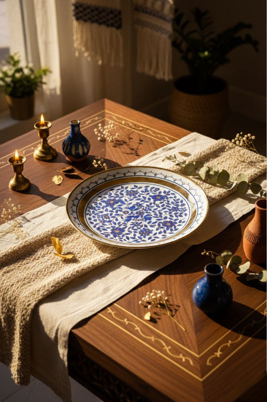 2002 Yapımı Osmanlı Tarzı Koleksiyonluk Porselen Tabak – Altın Yaldızlı Mavi Çini Motifli