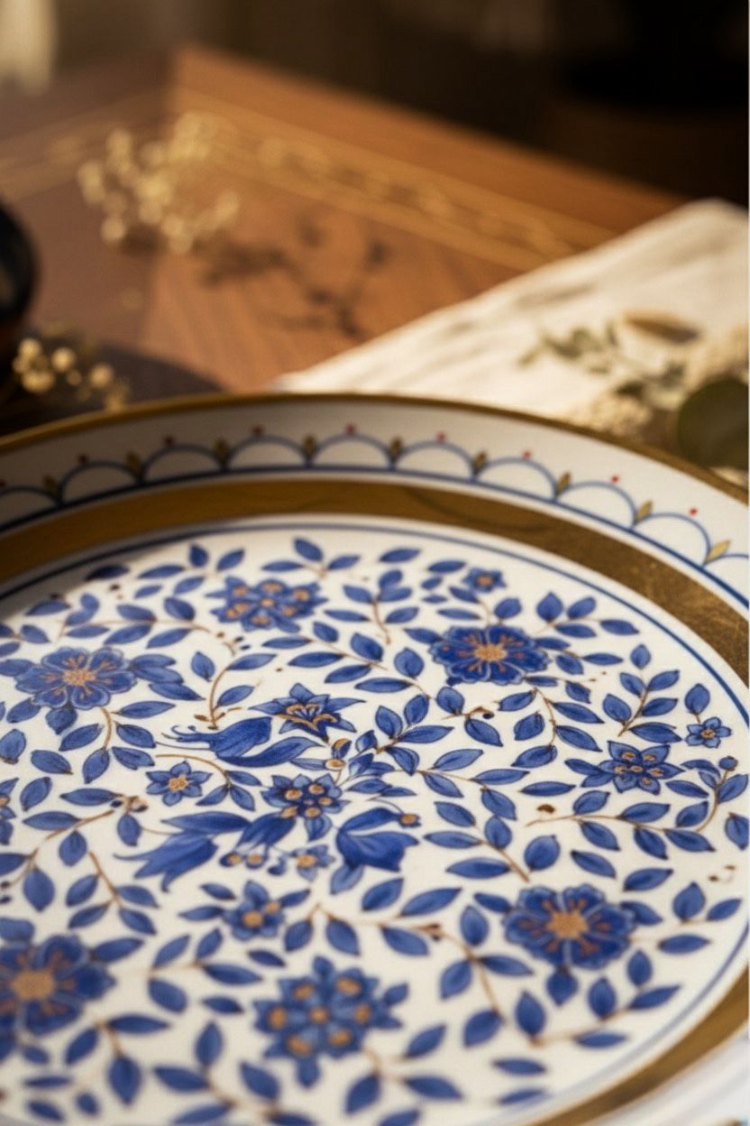 2002 Yapımı Osmanlı Tarzı Koleksiyonluk Porselen Tabak – Altın Yaldızlı Mavi Çini Motifli