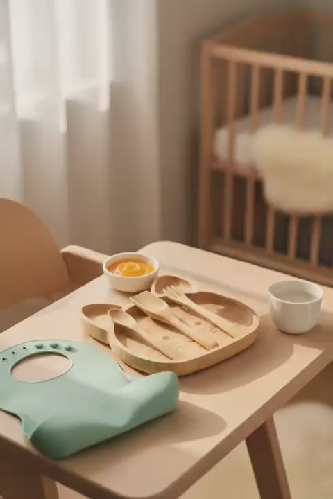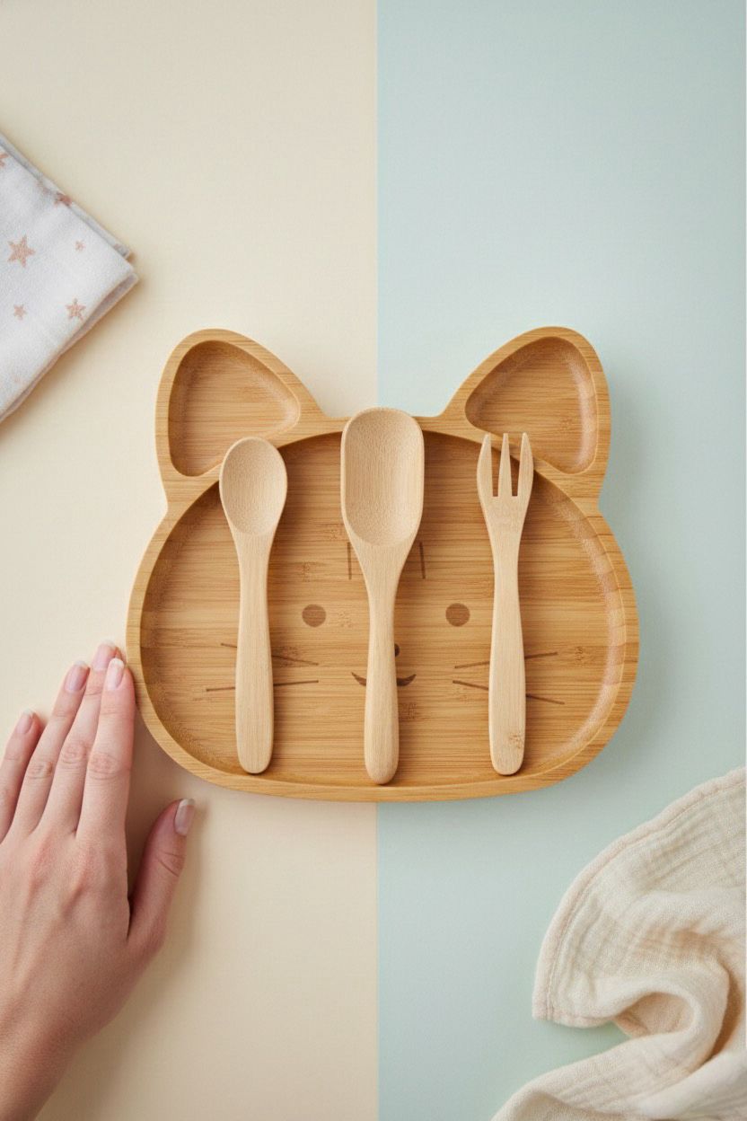 ✔️ Ergonomik Bambu Kaşık & Çatal – Küçük ellere uygun, kolay kavrama.
