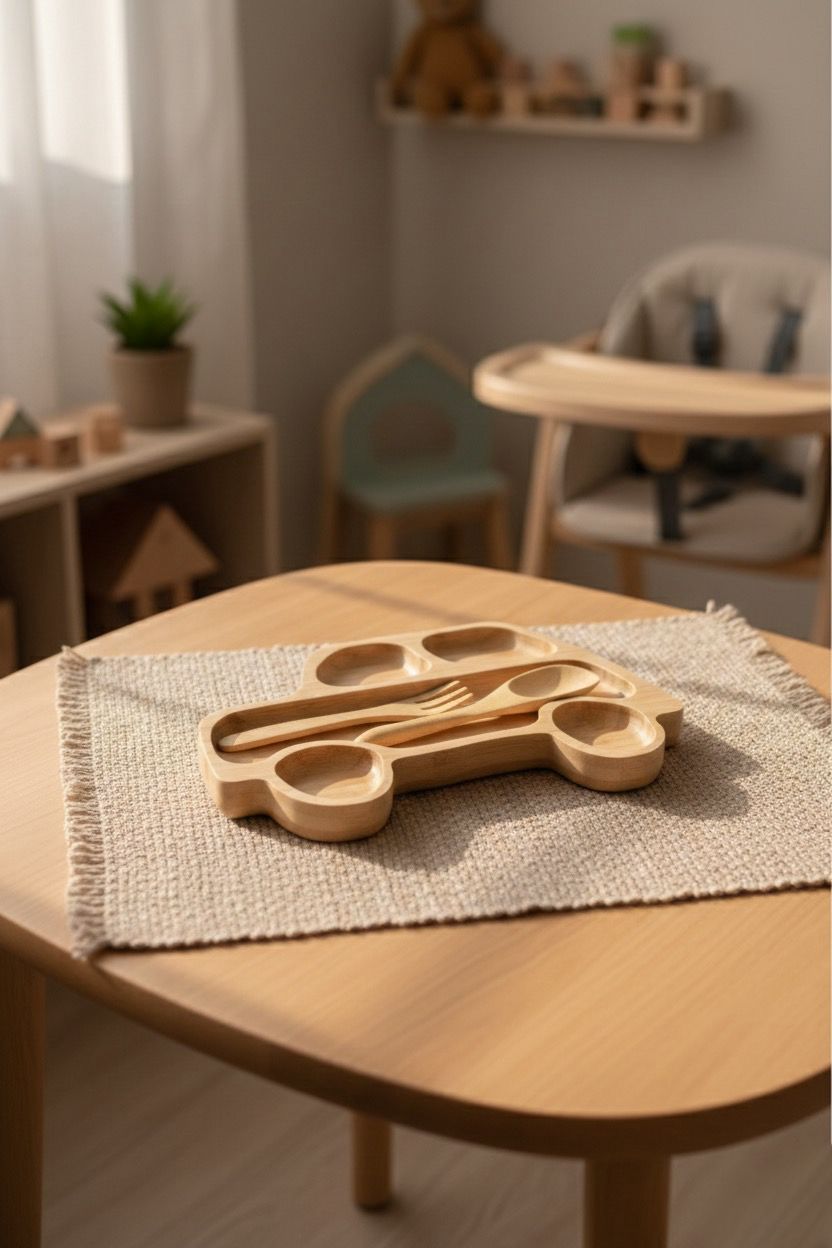 Araba Figürlü Bambu Bebek Mama Seti – Eğlenceli, Sağlıklı ve Bölmeli Tasarım