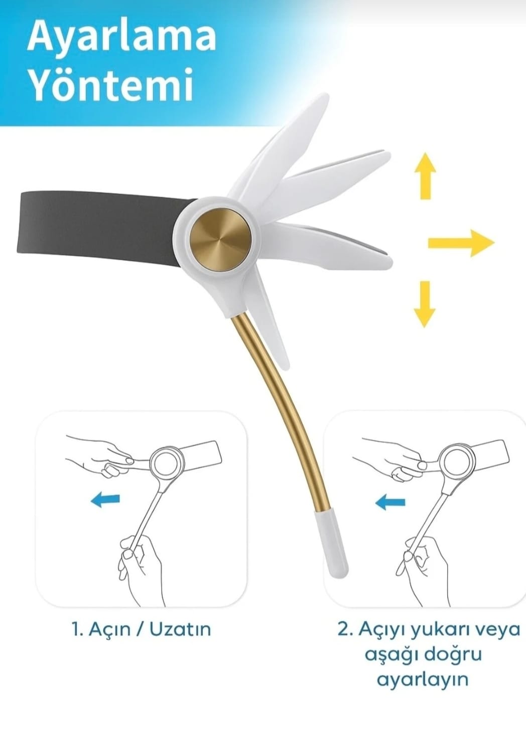 2. Üst kısımdaki döner başlıkları kullanarak destek açısını yukarı veya aşağı doğru kendinize uygun şekilde konumlandırın.