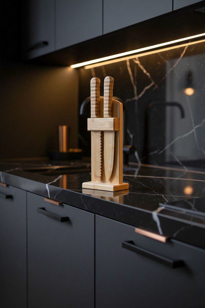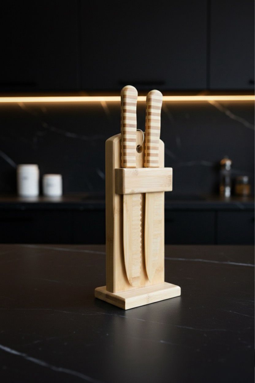 Doğal Bambu Bıçak Seti – Sağlam Yapı, Estetik Tasarım ve Pratik Stand