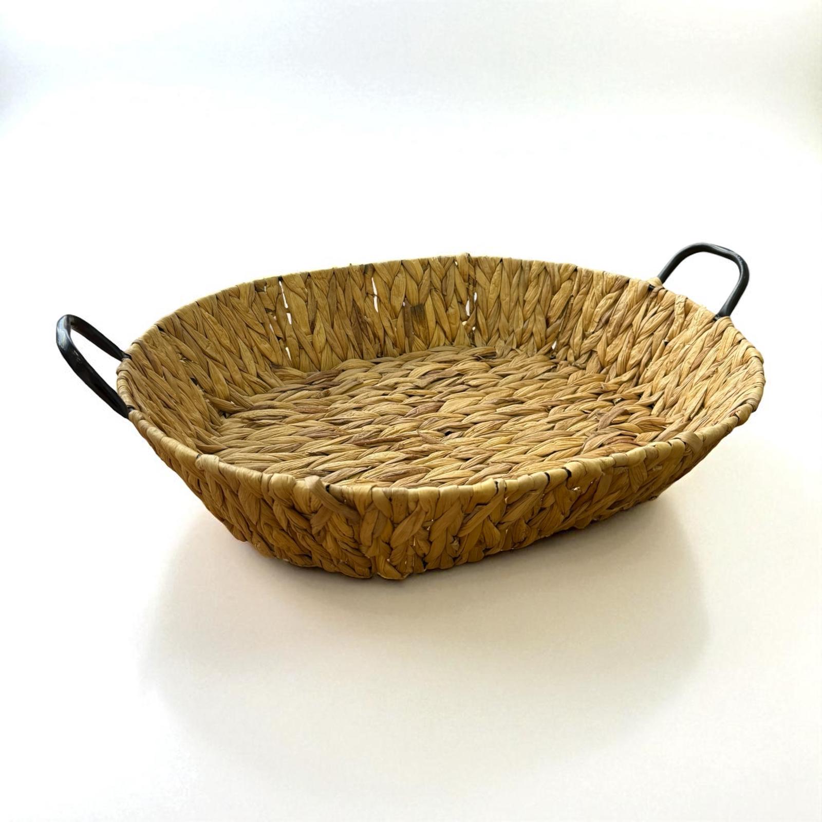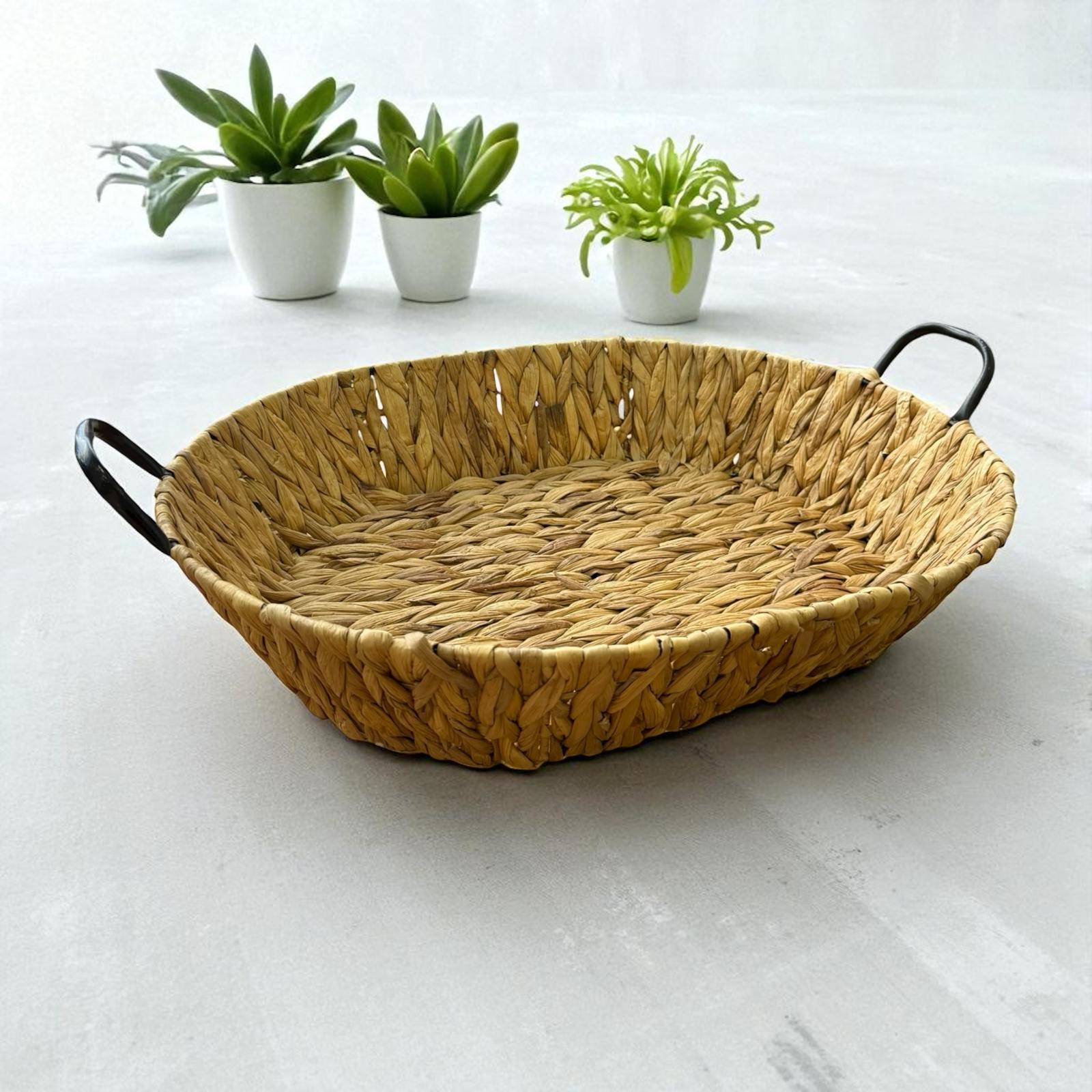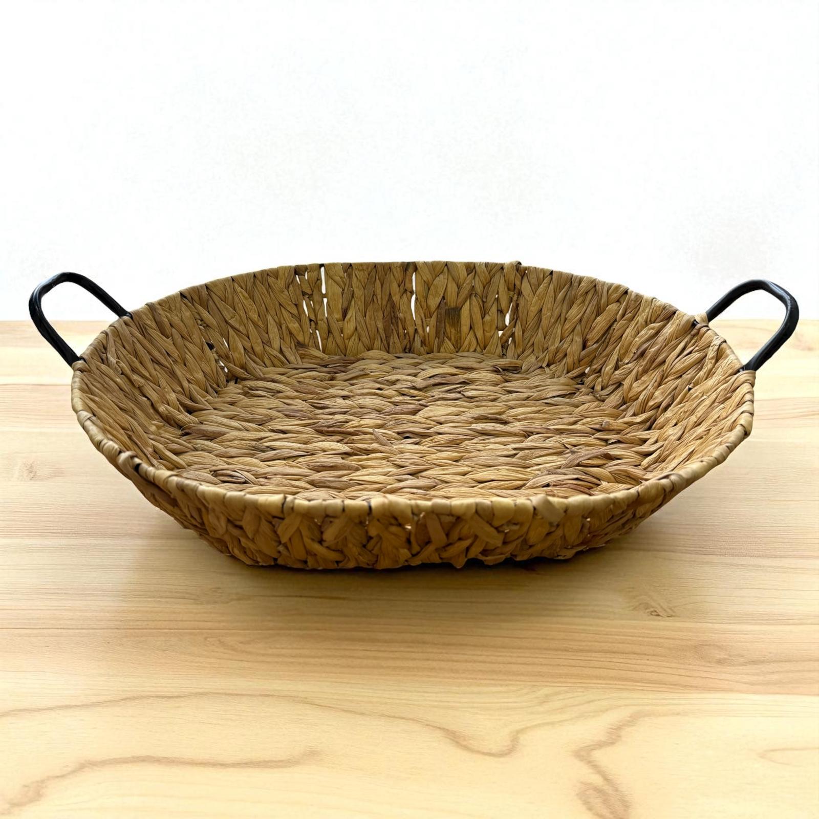 Doğal Su Sümbülü Hasır El Örgüsü Tepsi – Kulplu Dekoratif Sepet