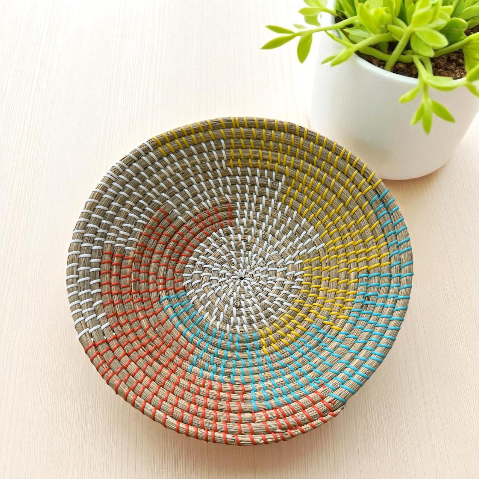 Hasır Dekoratif Sepet Turkuaz Sarı Beyaz Kırmızı