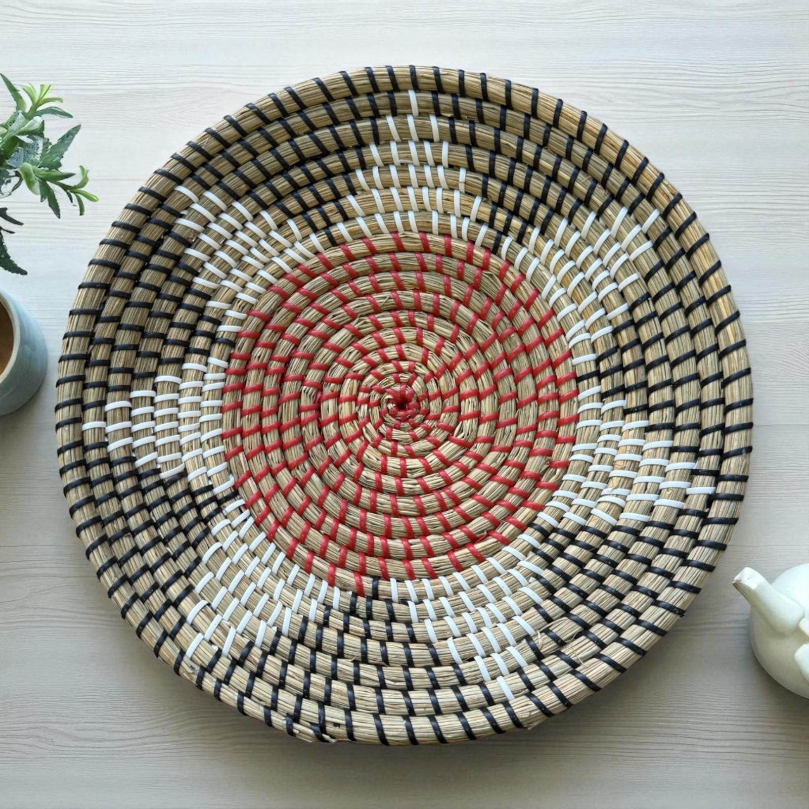 Hasır Dekoratif Sepet Siyah-Beyaz-Kırmızı