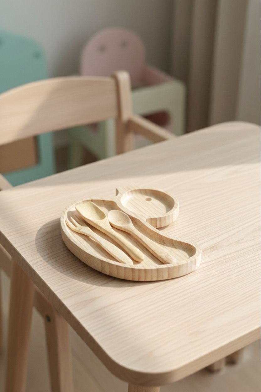 Ördek Figürlü Bambu Bebek Mama Seti – Sevimli, Doğal ve Bölmeli Tasarım